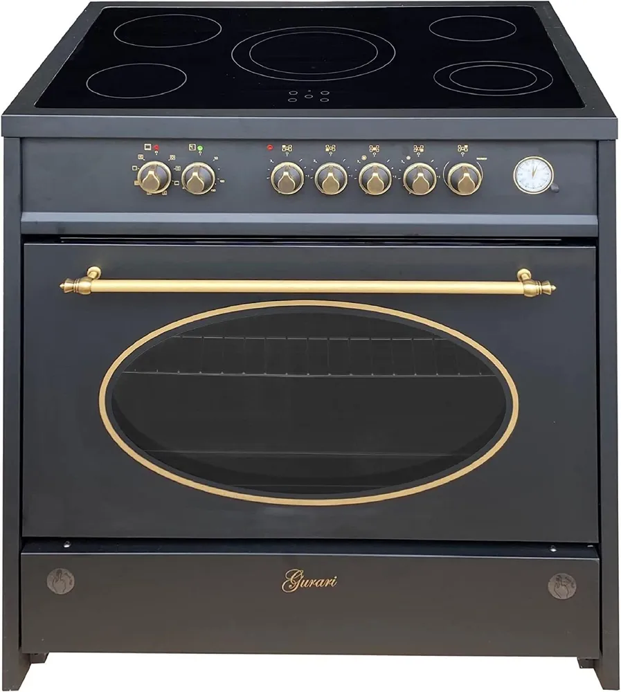 Gurari 912 Bl Retro, modèle 2022, cuisinière électrique 90 cm en noir avec plaque vitrocéramique.